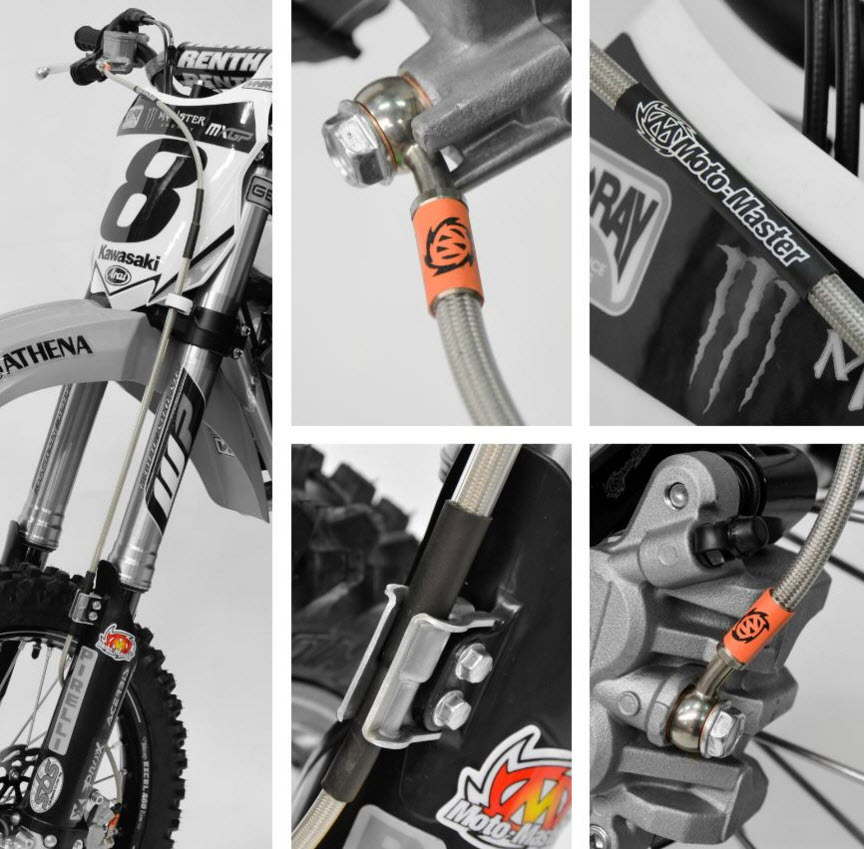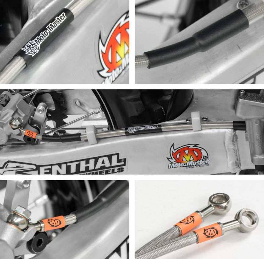 Moto-Master steel braided replacement brake lines are protected by a durable yet lightweight PVC covering and are fitted with stainless steel banjos. These banjo's are adjustable to ensure torque-free mounting. Moto-Master brake lines provide a significant increase in feel and response due reduced flex compared to a standard OEM plastic line. The brake lines include washers and fitment instructions. Moto-Master have brake lines which specifically match the Supermoto Radial Master Cylinder and a range of original replacement brake lines.
