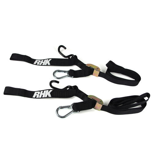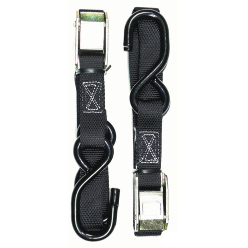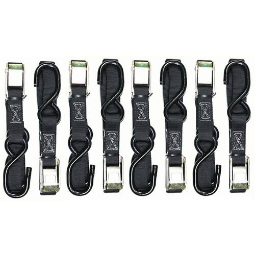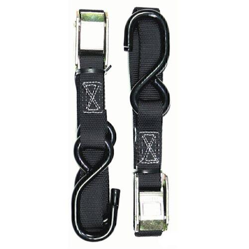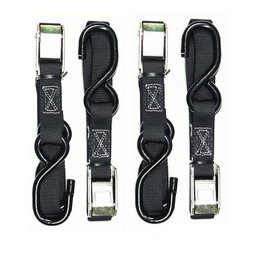 2 X Sets Of Heavy Duty Motorbike Tie Downs, Bar Loop Straps & Snap Hook Black/Red