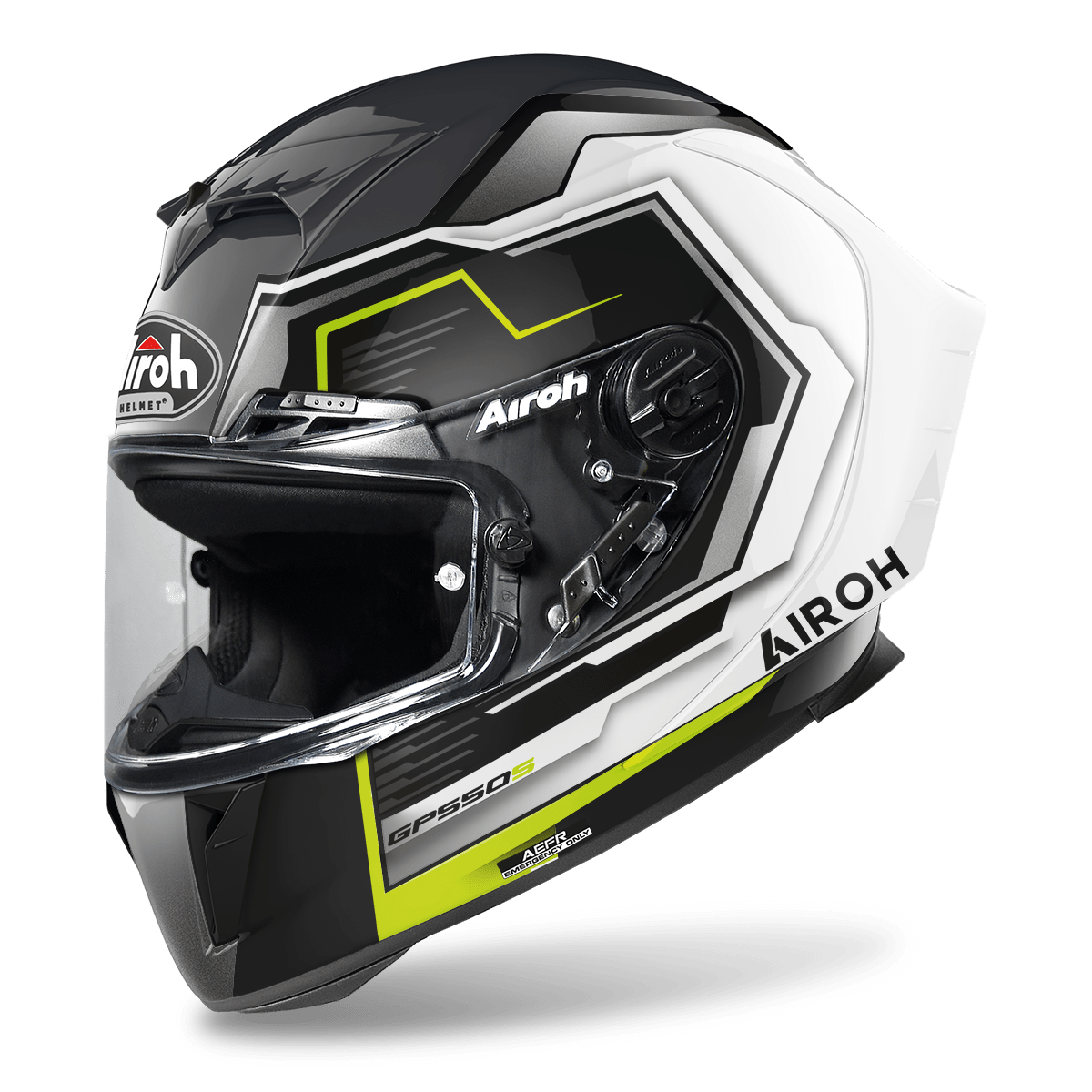 Shells in 3 different sizes, made of HPC (High Performance Composite), type-approved 2D racing visor with quick release, 8 air vents to ensure optimal ventilation, Pinlock lens included, Tear-Off Ready, Stop-Wind and A.E.F.R. (Airoh Emergency Fast Release) system for the quick removal of the cheek pads in case of emergency, complement this state-of-the-art product.
