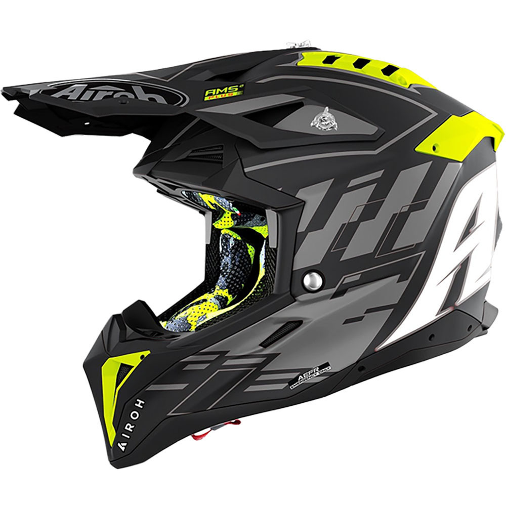Airoh’s technological sum is condensed in this new product, in which the AMS2 Plus (Airoh Multiaction Safety System Plus), AEFR (Airoh Emergency Fast Release) and AMLS (Airoh Magnetic Lining System) systems are profuse, which evolves, also including the magnetic cheek pads.