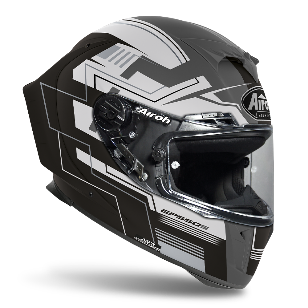 Innovative rear spoilers create a displacing effect at high speeds and the internally channelled structure provides an effective air extraction.Shells in 3 different sizes, made of HPC (High Performance Composite), type-approved 2D racing visor with quick release, 8 air vents to ensure optimal ventilation, Pinlock lens included, Tear-Off Ready, Wind-Stop and A.E.F.R. (Airoh Emergency Fast Release) system for the quick removal of the cheek pads in case of emergency, complement this state-of-the-art product.