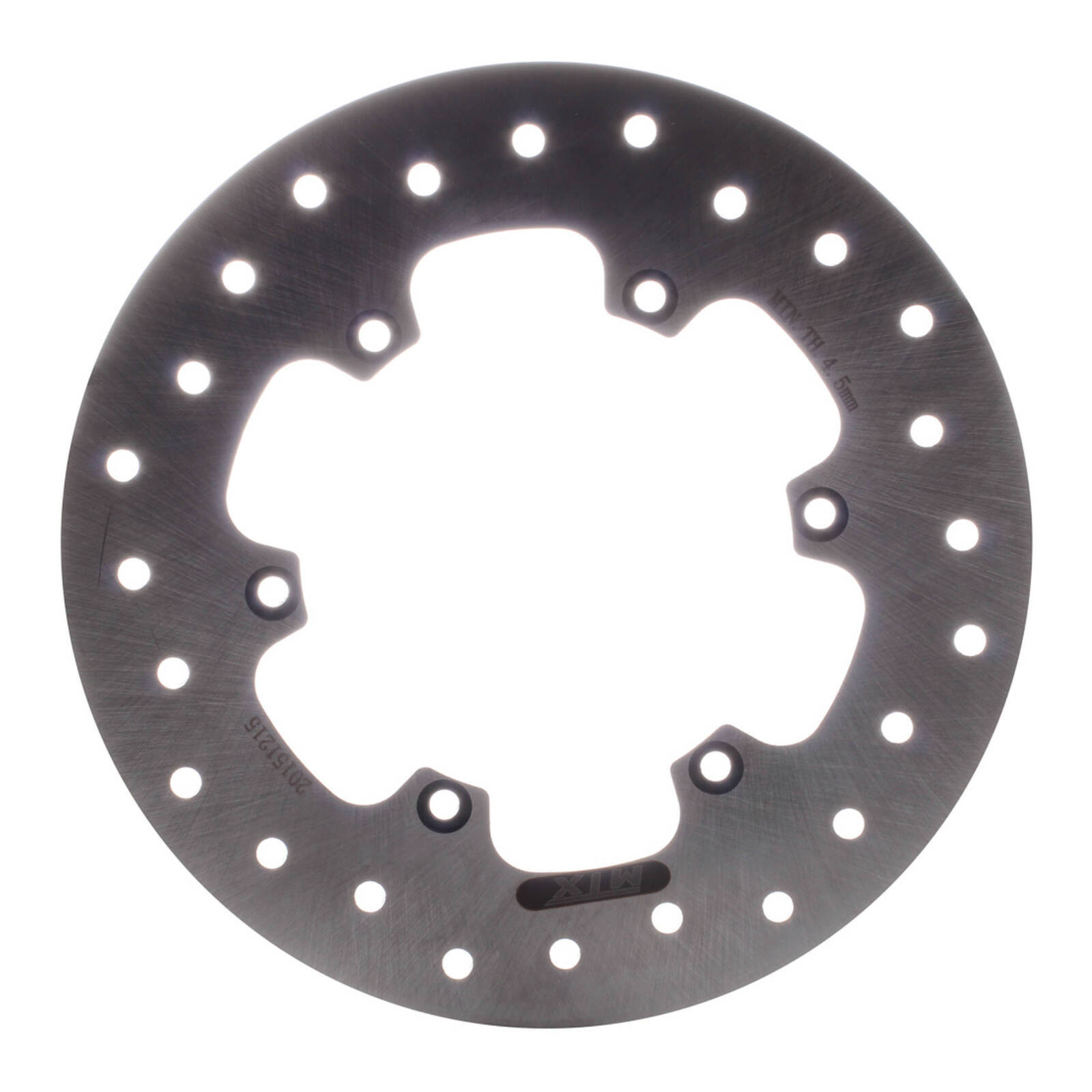 MTX solid discs are constructed using one complete segment of Japanese SUS 420 stainless steel then heat-treated to HRC 36+-2. Lightening and drill hole patterns are as per OEM designs to improve braking performance and reduce the temperature of the disc.