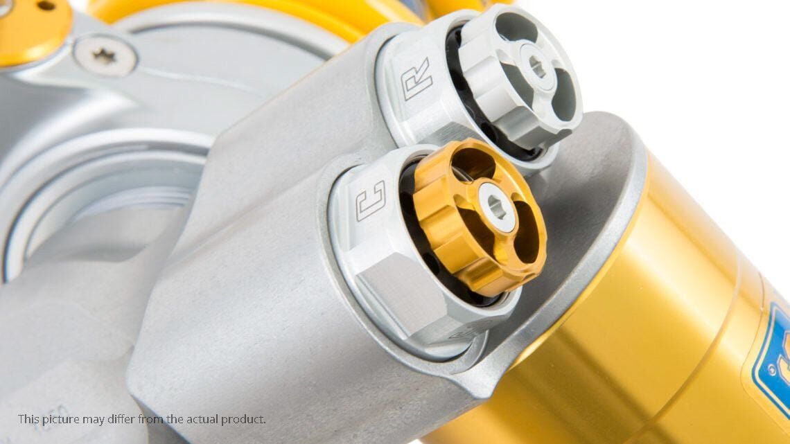 Öhlins TTX technology maintains pressure balance in the shock, giving you more precise and consistent damping characteristics, even under the most demanding track conditions. Compression and rebound damping functions are kept separate, with MotoGP-inspired adjuster knobs and a wider adjustment range to help you fine-tune the damping behavior. Adjustments to compression and rebound damping can be made by hand or with a hex key.