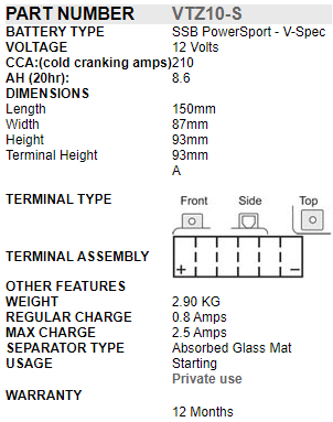 Each range varies in performance level and battery type, including not only Conventional types (acid filled) but also Lithium, Maintenance-Free, VRLA, Gel & DryCell types which means that for every application the customer has choice of up to 7 different batteries. Each range is also uniquely colour coded making SSB PowerSport the easiest motorcycle battery to resell in Australia.