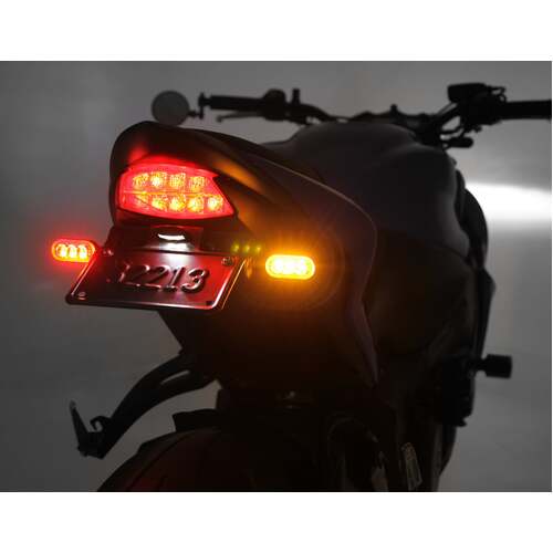 This M8 stud version of our T3 signal pod is designed to replace your factory turn signals. The T3s amber signal light is far brighter than stock but much smaller in size. The additional red brake light circuit provides Maximum visibility without having to add other auxiliary brake lights.