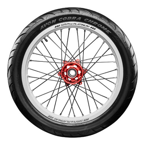 Avon Cobra Chrome Tyres are the next evolution of Avon’s popular Cobra range delivering enhanced performance without a trace of actual chrome. Developed using extensive R&D from the original Cobra tyres the Cobra Chrome offers superior grip in both dry and wet conditions along with a larger contact patch for improved handling and stability. Featuring an aggressive tread design and expanded snakeskin sidewall etching these tyres bring both performance and style to cruisers and custom bikes.