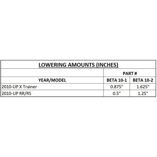 - Lowering amounts indicate REAR lowering, NOT overall bike height.