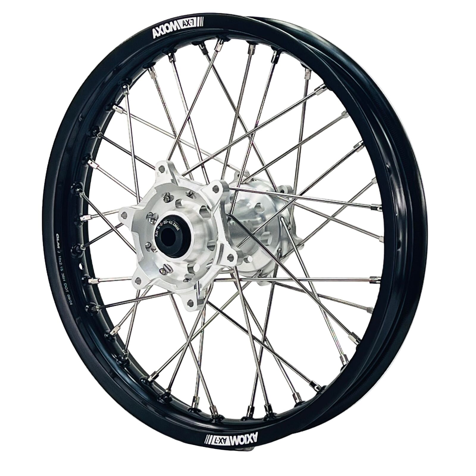 Axiom hubs are machined from solid billet 6082-T6 aircraft grade aluminum. They are fitted CS race wheel bearings, spacers, and seals. Axiom wheels are built utilizing extra strong, high tensile, oversized polished stainless-steel spokes for additional strength.