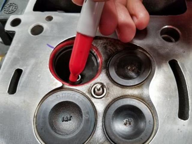 To test valve-to-seat contact, a permanent marker can be used to dye the valve seat.