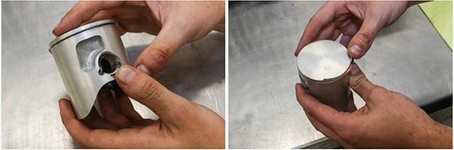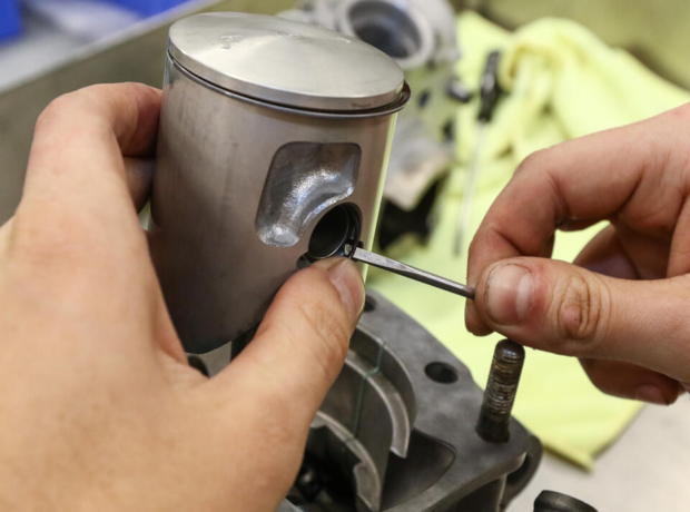Pro tip: You can temporarily put the wrist pin in and use it as a backstop so that the circlip is going to be forced to move into its groove. We recommend you install the circlip with the use of your hands, to lessen the chances of any deformation.