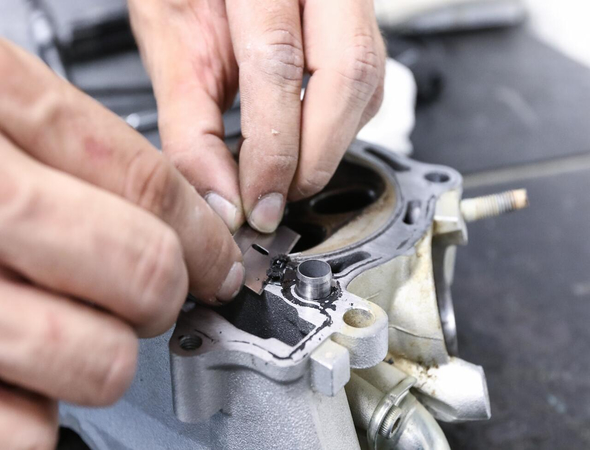 Now that everything has been removed, you're going to want to clean any residue off your sealing surfaces and gasket. As well as the base for the cylinder on the cases, the top and bottom surfaces of the cylinder itself, and the bottom surface of the head that seals to the cylinder.