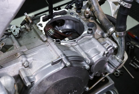 Before installing the new base gasket, piston and re-installing the cylinder, make sure the surface is clean and the crankcase is free of debris. While the top end is off, this could also be a good time to make sure your crankshaft is in spec.