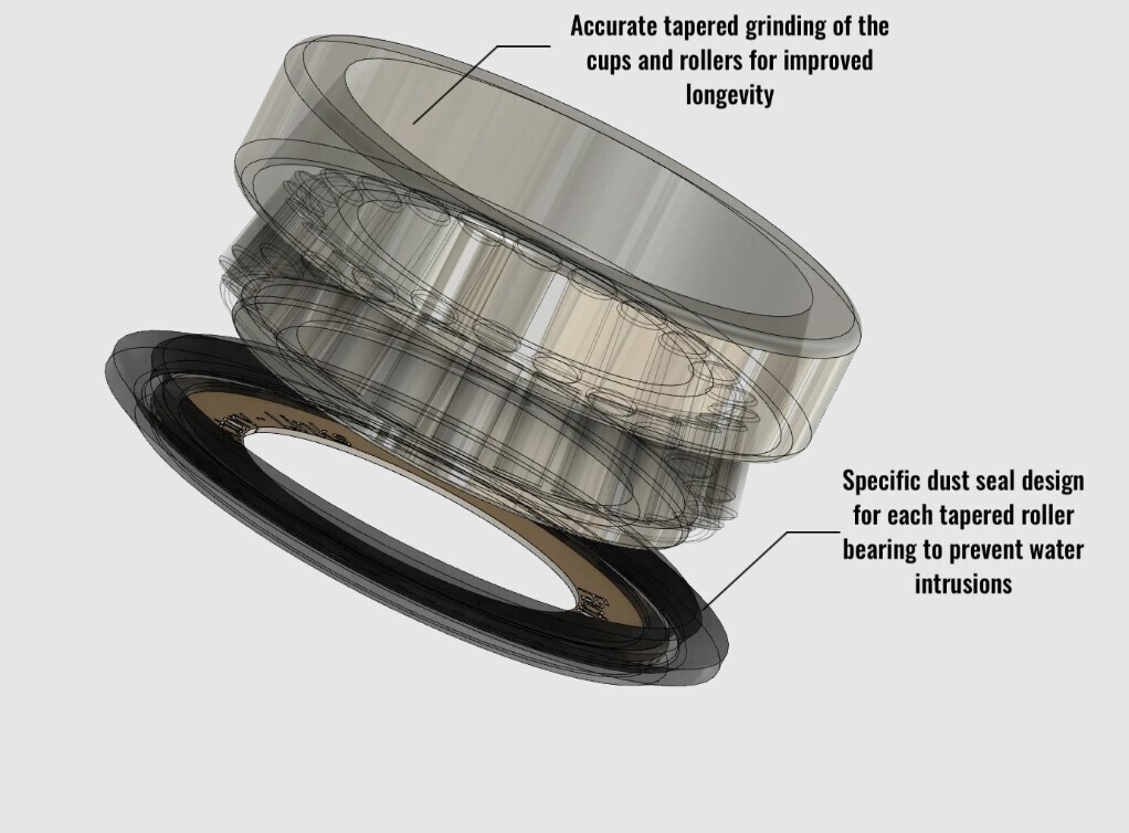 Our premium kits contain all elements required for a full OEM quality service of your steering stem. Our dedicated off-road design of tapered bearings and dust eals are specifically manufactured in order to reach the stringent OEM quality requirements, in terms of materials, dimension tolerances, hardness and surface roughness.