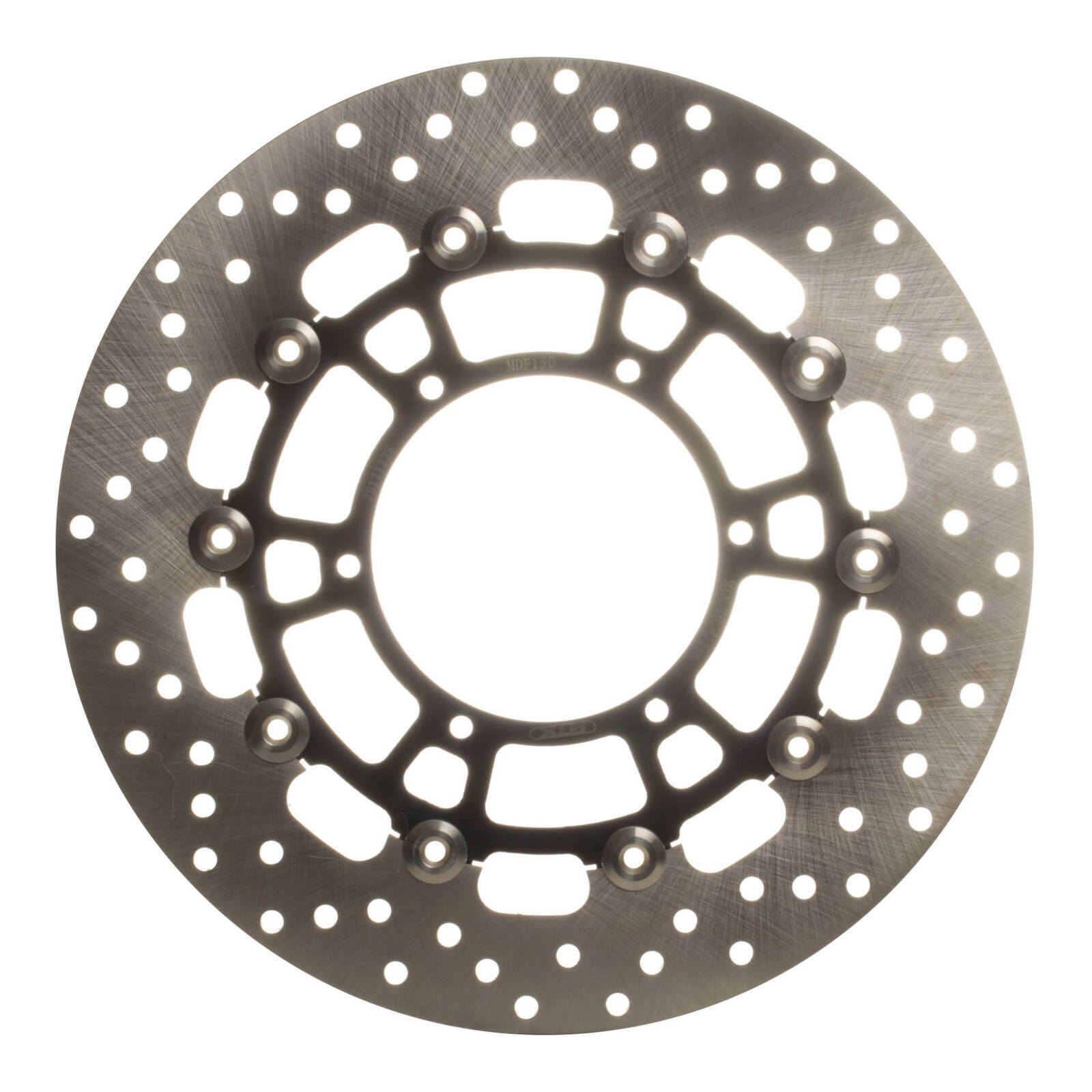 MTX floating discs are made from two segments of stainless steel which are riveted together to allow the outer section of stainless steel to expand under extreme temperatures. The outer section is manufactured from Japanese SUS 420 stainless steel then heat-treated to HRC 36+-2 while the centre of the disc is manufactured from steel or alloy. An alternative to large original discs floating discs improve braking performance by ensuring the disc is always in perfect alignment with your pads for the perfect contact throughout all operating temperatures. Lightening and drill holes are designed to improve braking performance and reduce the disc temperature.