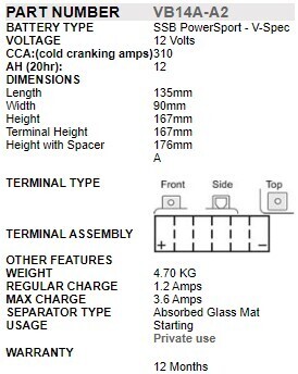 - Replacement For: CB14-A1, CB14-A2, CB14A-A2, CB14-B2, YTX14AH-BS, MBTX14AU, MG14-A2-C