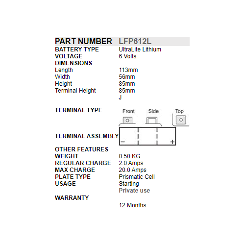 - Ultra Light Weight - 1/3 of a normal lead-acid battery