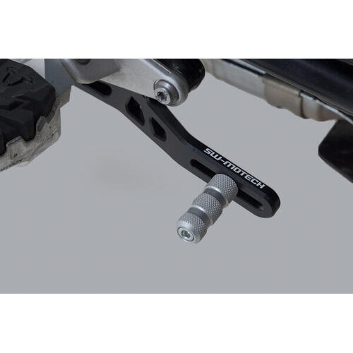 The adjustable brake pedal made of high-quality milled aluminum with HART-COAT® finish allows for optimized handling and control of the brake. The length of the SW-MOTECH brake pedal can be adjusted by 5 cm, so it suits every foot and every driving style. The tread pattern increases grip and provides improved stability for sporty driving and longer tours. With the Adventure tread (sold separately) you can improve brake pedal handling, especially during offroad driving while standing.