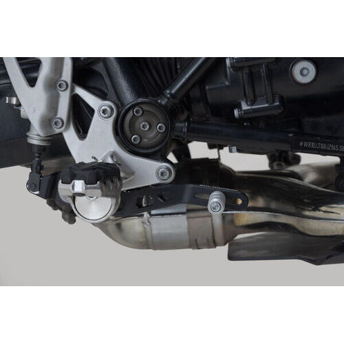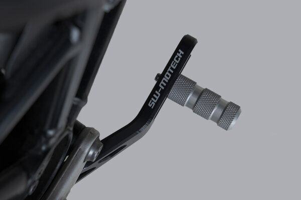 The adjustable brake pedal made of high-quality milled aluminum with HART-COAT® finish allows for optimized handling and control of the brake. The length of the SW-MOTECH brake pedal can be adjusted by 5 cm, so it suits every foot and every driving style. The tread pattern increases grip and provides improved stability for sporty driving and longer tours. With the Adventure tread (sold separately) you can improve brake pedal handling, especially during offroad driving while standing.