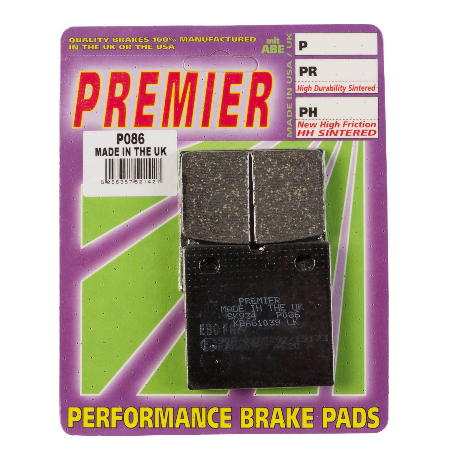 Premier's most successful general use material, our P series pads, are a tough Kevlar based organic material giving superb brake effect on all sportbikes and cruisers. This material is preselected by the catalogue when you order P prefix disc pads.