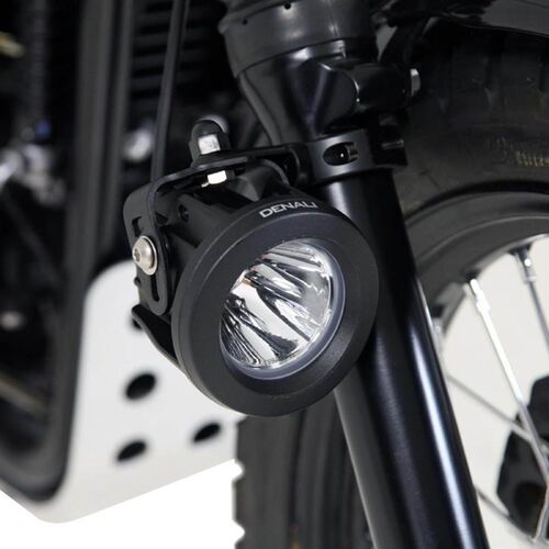 This DENALI Bar Clamp Light Mount Kit allows fitment of any DENALI LED Lights to the outer fork tube on motorcycles, or any tube 50mm-60mm (2"-2.375") in diameter. These light mounts have a unique octagonal inner profile that allow the clamps to securely grip a wide range of tube diameters and include an optional, fully rotatable mounting shelf to create a super versatile and robust light mounting solution.