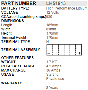 Unlike many other lithium batteries, SSB PowerSport Lithium Batteries are made using prismatic cells making them not only safe to use, but also boasts higher CCA (cold cranking amps), better cyclic properties and have a longer life. We are aware of only one other brand of lithium starting battery that uses prismatic cells. Other brands generally use cylindrical cells and while they may be a little cheaper due to lower manufacturing costs, they are inferior and are not designed for starting vehicles.​