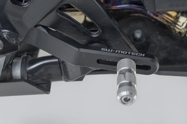 The adjustable brake pedal made of high-quality milled aluminum with HART-COAT® finish allows for optimized handling and control of the brake. The length of the SW-MOTECH brake pedal can be adjusted by 5 cm, so it suits every foot and every driving style. The tread pattern increases grip and provides improved stability for sporty driving and longer tours. With the Adventure tread (sold separately) you can improve brake pedal handling, especially during offroad driving while standing.