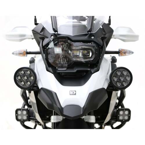 This vehicle specific driving light mount allows you to mount any DENALI driving light in the optimum location on your motorcycle. This kit includes beefy powder coated steel brackets with and M8 mounting hole and all necessary mounting hardware.