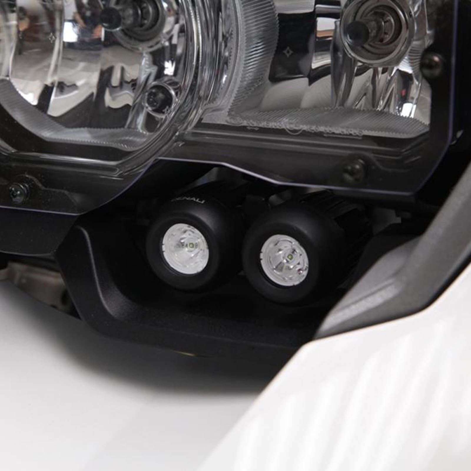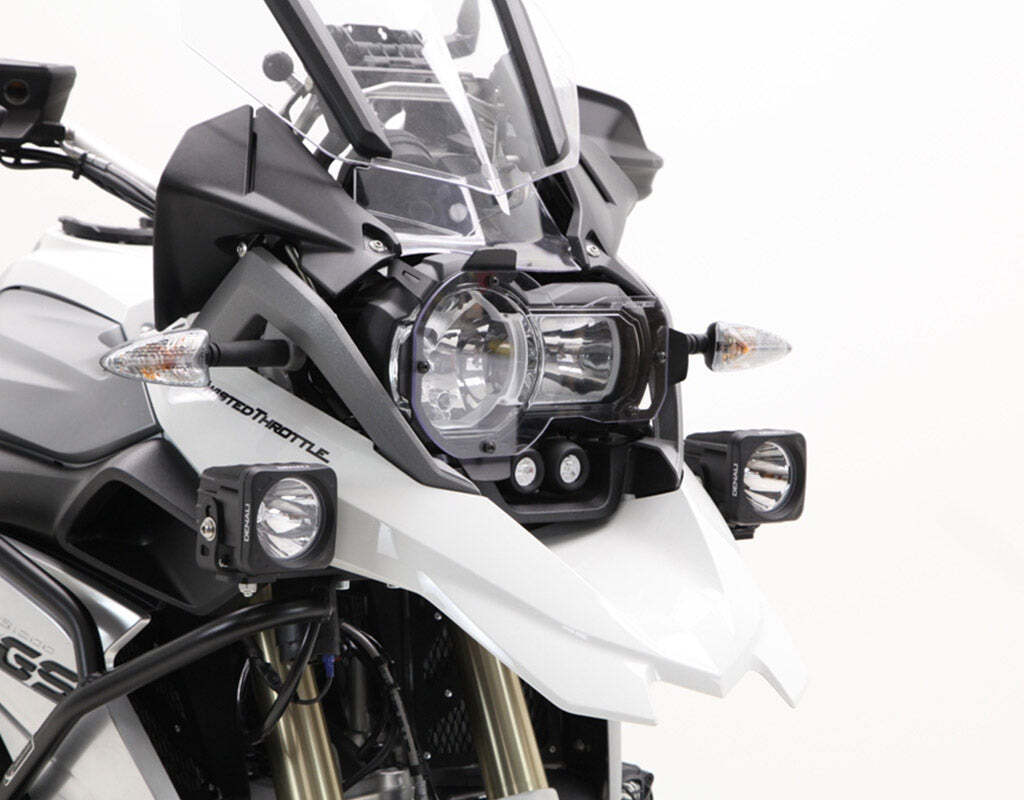 This bike-specific kit adds DENALI 2.0 DM high-intensity LED lights to your BMW R1200GS LC. This powder coated steel bracket locates the two LED pods directly below your stock headlight for a clean and factory looking fit.
