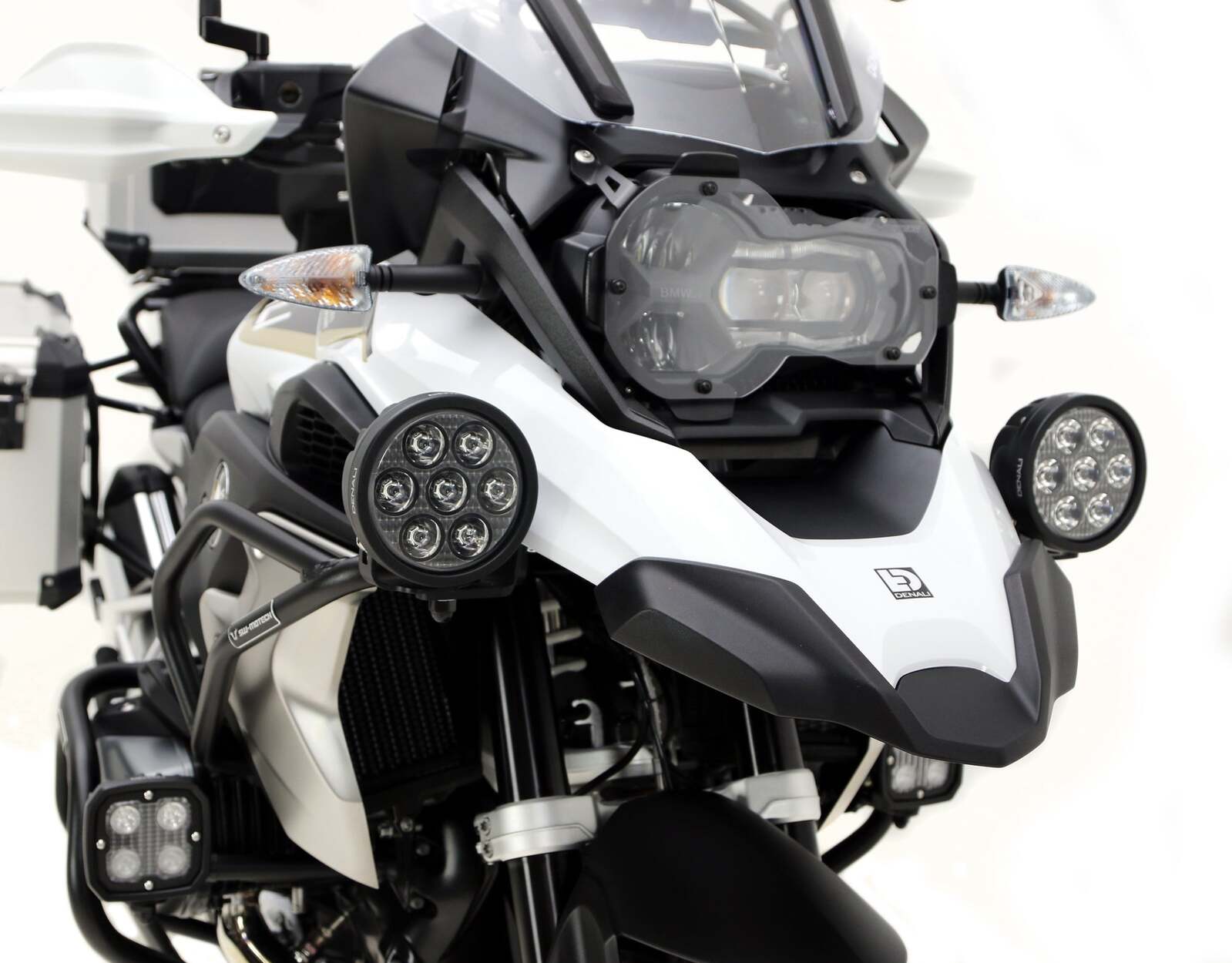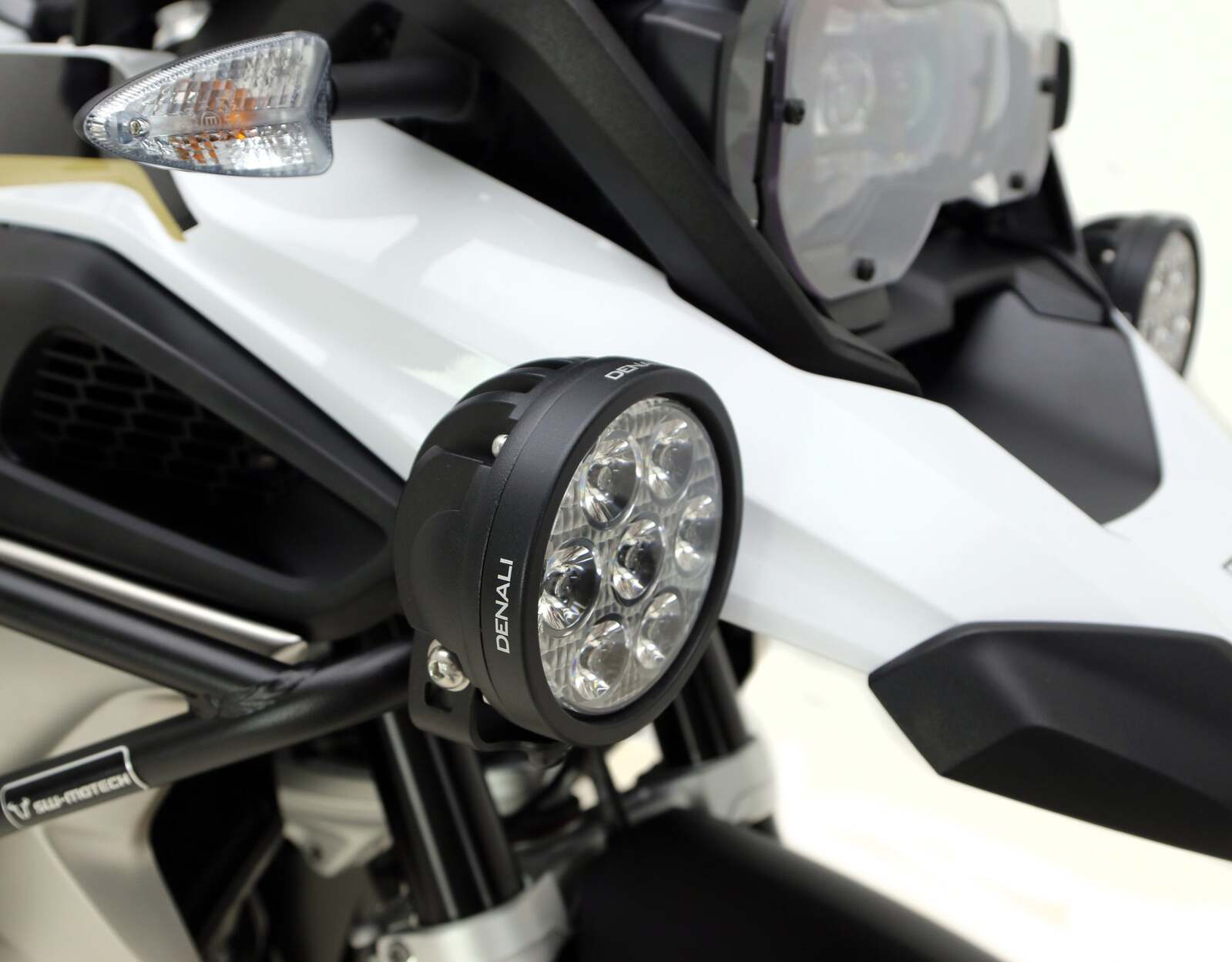 This vehicle specific driving light mount allows you to mount any DENALI driving light in the optimum location on your motorcycle. This kit includes beefy powder coated steel brackets with and M8 mounting hole and all necessary mounting hardware.