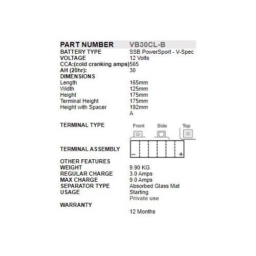 SSB POWERSPORT MOTORCYCLE BATTERY - AGM