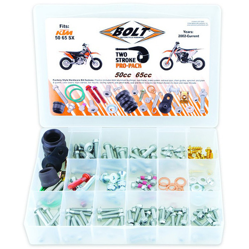 Bolt Motorcycle Hardware was born in Hollister Hills. In 2003, we released our first product, the Japanese Track Pack. Since then, we have created several other hardware solutions and our product line continues to grow. Our fasteners are tested and used at the professional level in supercross, motocross and ATV racing. We carefully review new models every year to keep our hardware products current and applicable. Our products may get copied, but are never matched.