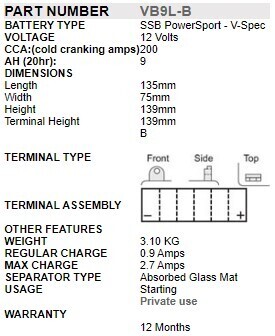 Each range varies in performance level and battery type, including not only Conventional types (acid filled) but also Lithium, Maintenance-Free, VRLA, Gel & DryCell types which means that for every application the customer has choice of up to 7 different batteries. Each range is also uniquely colour coded making SSB PowerSport the easiest motorcycle battery to resell in Australia.