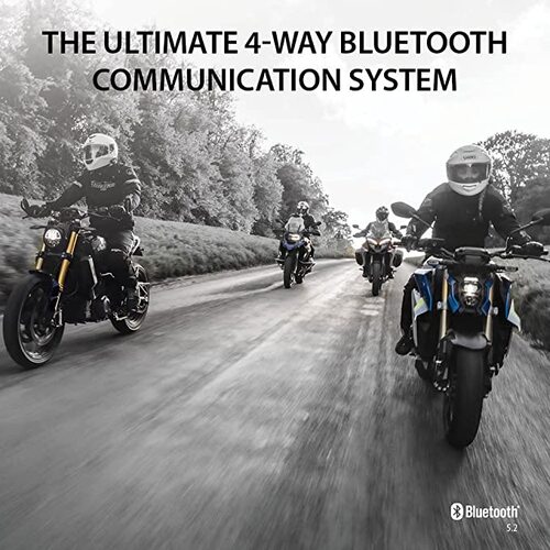 You can use the Freecom 4X in a group of up to 4 riders with a range up to 1,2km (0,75 miles). Should you lose connection to the other rider, the Cardo will automatically reconnect thanks to the 5.2 Bluetooth chip.