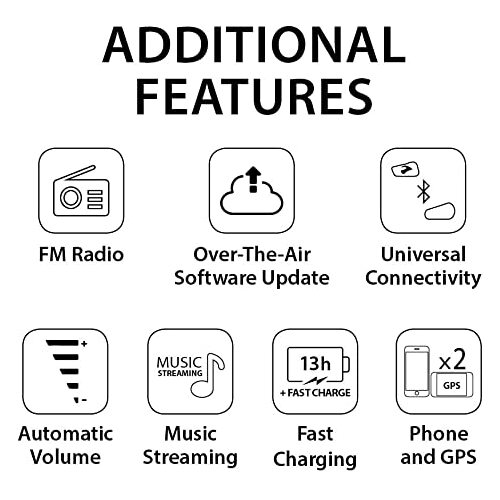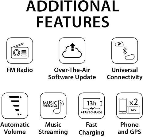 The Spirit HD has a 2 way bluetooth intercom so you can communicate with another rider with a range up to 600m (0.4 mile). You can make calls and control your navigation with the touch of your finger or the sound of your voice. And, all the music you want can be streamed directly from your smartphone or you can switch on the FM radio.