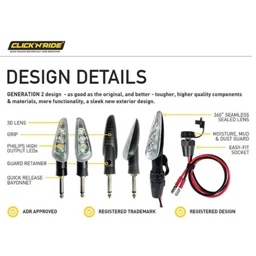 CLICK N RIDE QUICK RELEASE MOTORCYCLE INDICATOR BLINKER 2 PACK
