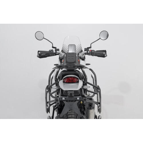 The Adventure set Luggage contains PRO side carriers to fit the Aprilia Tuareg with the matching ADVENTURE-RACK. The side carrier and rack are fastened to the bike-specific attachment points and offer sturdy support for the black TRAX ADV aluminium cases.