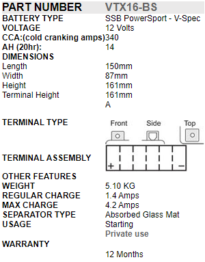 SSB POWERSPORT MOTORCYCLE BATTERY - AGM