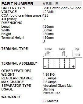 SSB POWERSPORT MOTORCYCLE BATTERY - AGM