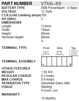 Each range varies in performance level and battery type, including not only Conventional types (acid filled) but also Lithium, Maintenance-Free, VRLA, Gel & DryCell types which means that for every application the customer has choice of up to 7 different batteries. Each range is also uniquely colour coded making SSB PowerSport the easiest motorcycle battery to resell in Australia.
