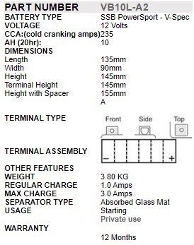 Each range varies in performance level and battery type, including not only Conventional types (acid filled) but also Lithium, Maintenance-Free, VRLA, Gel & DryCell types which means that for every application the customer has choice of up to 7 different batteries. Each range is also uniquely colour coded making SSB PowerSport the easiest motorcycle battery to resell in Australia.