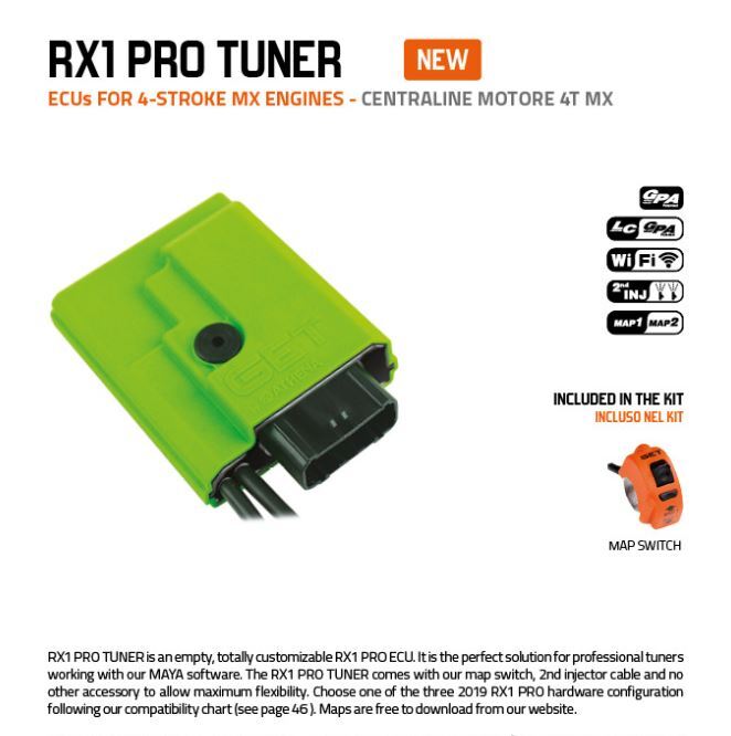The GET RX1 Pro is the brand new ECU for the 2018 4-stroke engines, the perfect mixture of technology and flexibility with Plug & Play on standard engines and completely reprogrammable it comes with 2 maps developed by the GET R&D Department already installed: