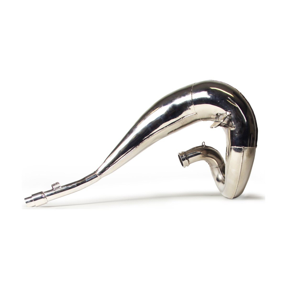 DEP 2 stroke pipes are produced from high quality CR1 grade, mild steel material. Ranging from 0.9-1.2mm, depending on the model and purpose. The 2 stroke stampings are roduced through our own deep drawer process, using CNC cylinder mounts, in-house laser cut mounting brackets and fabricated with high quality TIG and MIG welding. All models are available in the bare metal factory finish and nickel finish. DEP 2 stroke pipes have been designed to improve performance over the OE pipe with in-house DYNO and track testing.
