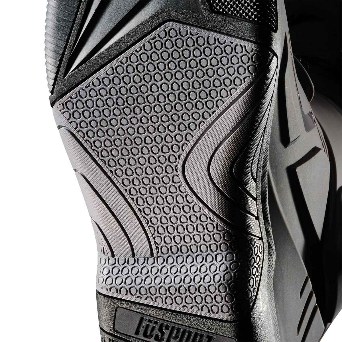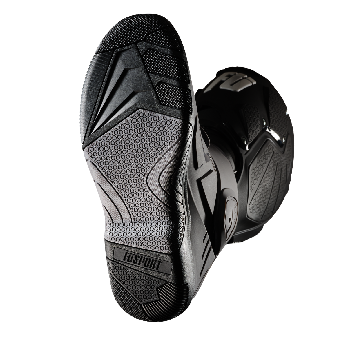The XP2 Xtreme Pilot is the range topping off-road boot and incorporates a completely new design and technology for maximum protection and performance. Built on a competition platform, the Xtreme Pilot incorporates an aggressively shaped toe box that is low profile and hugs the foot to enhance feel and control when interacting with the foot controls. Using the new Füsport External Articulation System (F.E.A.S), the boots allow increased linear movement while locking out to prevent hyperextension, also adjusting as you move. Closure system ensures a secure fit with four separate anchor points including a hidden lower buckle ensure protection of the fastening system and no interference with obstacles off the bike. Built from injection moulded components which assist to dispel water and keep your feet dry, the Xtreme Pilot is hard wearing when on the track or trail and utilises a durable moulded rubber outsole specially compounded to provide enhanced grip and control for any kind of ride.