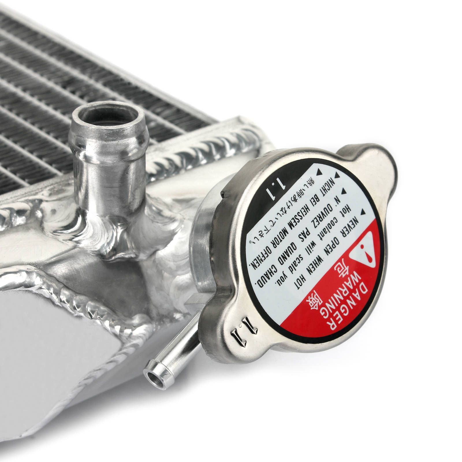 Whites aluminium radiators make great replacements to your bent, cracked, and damaged radiators. Whites radiators offer exceptional cooling and maximum efficiency to ensure your machine's top performance. Based on the OEM specs, a hand-welded aluminium design offers both a great fit and styling. All cap side radiators will include a new radiator cap.