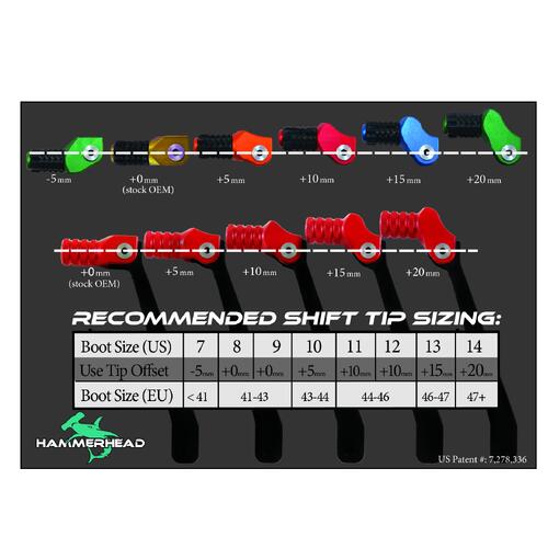 - Replaceable / interchangeable shift tips, to customize lever to your boot size.