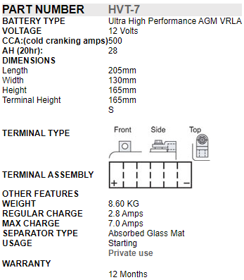 | Type | AGM Battery |