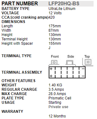 Unlike many other lithium batteries, SSB PowerSport Lithium Batteries are made using prismatic cells making them not only safe to use, but also boasts higher CCA (cold cranking amps), better cyclic properties and have a longer life. We are aware of only one other brand of lithium starting battery that uses prismatic cells. Other brands generally use cylindrical cells and while they may be a little cheaper due to lower manufacturing costs, they are inferior and are not designed for starting vehicles.​