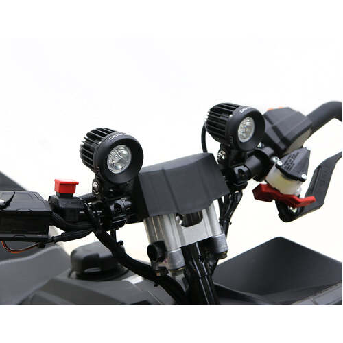 These clamps are intended for mounting lights to OEM or aftermarket crash bars, handlebars and frame tubes commonly found on adventure bikes, dual sport bikes, ATVs and snowmobiles. The clamps allow the lights to be positioned to the inside of the bars, ensuring they will be protected in a tip over.