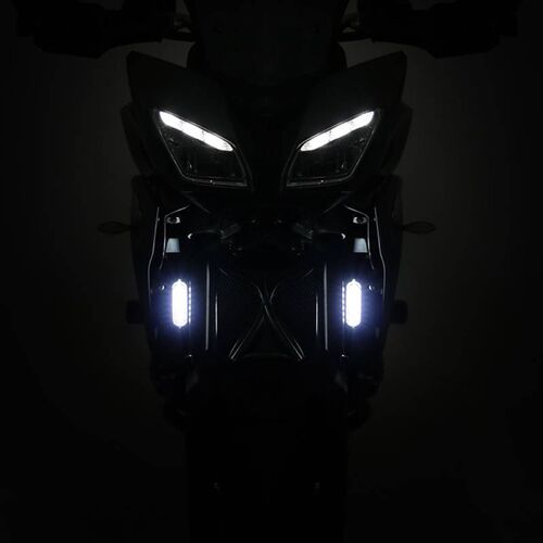Like emergency strobe lights, the DENALI DRL optics are designed to concentrate the light at the source as opposed to project it down the road. While ideal for Daytime and Nighttime conspicuity, these lights will also provide a noticeable spread of light immediately in front of your motorcycle at Night. Available in white and amber.