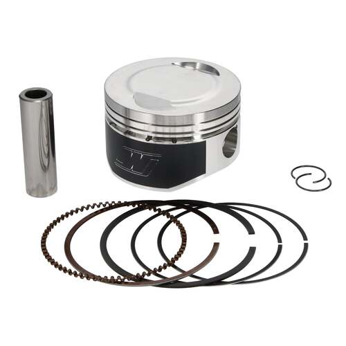 - 4-stroke kits feature a ‘race-ready’ dome finish with smooth edges for improved combustion flow. Horizontal slot-pin oiling reduces friction and provides scuff resistance, along with a pressure seal groove for maximum ring seal.